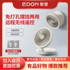 edon爱登风扇壁挂台式两用电扇厕所小风扇可充电吹凉风的厨房折叠
