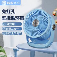 韩雀空气循环扇摇头循环扇家用香熏台壁两用电风扇折叠风扇充电款