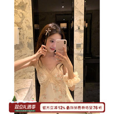 法式新款女夏性感蕾丝带胸垫小胸聚拢冰丝吊带睡裙高级感家居春秋