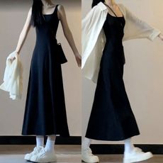 纯色吊带连衣裙女夏季新款无袖外穿显身材打底裙修身显瘦背心长裙