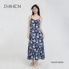 XZY/欣争艳 微胖复古印花吊带连衣裙女夏小众设计感气质修身长裙