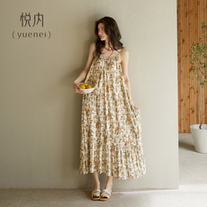 悦内凉感睡裙女款睡衣夏季莫代尔吊带背心夏款长款碎花连衣裙夏天