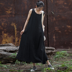 系带无袖连衣裙女2025年夏季新款棉麻文艺范原创女装吊带背心长裙