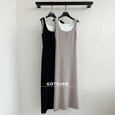 羊织道青木 2025年春夏季新款圆领工字背心吊带裙裙子长裙连衣裙