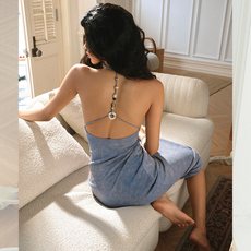 纯欲辣妹吊带连衣裙女夏季气质生日宴会裙子性感荡领露背包臀短裙