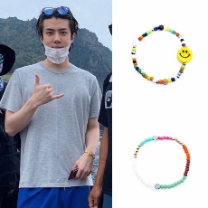 EXO吴世勋同款彩珠钻笑脸手链环镯男女时尚绳韩不规则串珠礼饰品W