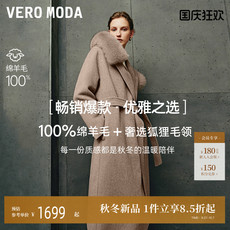 Vero Moda毛呢大衣女2024秋季新款纯绵羊毛双排扣系带显瘦双面呢