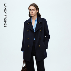【纯羊毛】LANCY/朗姿2025冬新款双面呢中长款大衣立领毛呢外套女