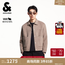 杰克琼斯男装冬季休闲纯色绵羊毛常规翻领休闲舒适外套毛呢大衣