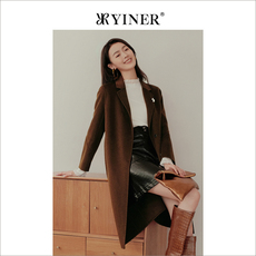 【绵羊毛+蚕丝】YINER音儿专选女装冬季纯色西装领双面呢大衣