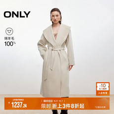 ONLY2025秋季新款100%绵羊毛双面呢纯色睡袍式系带长款毛呢大衣女