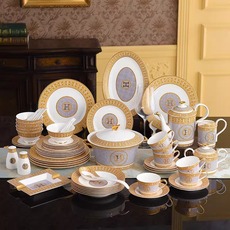欧式马赛克骨瓷餐具碗勺盘汤锅西餐盘套装英式咖啡杯乔迁送礼金H