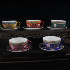 珐琅彩陶瓷咖啡杯碟套装家用景德镇骨瓷女士精致下午茶英式万花杯