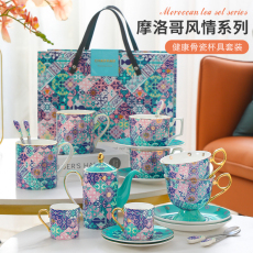 摩洛哥风情咖啡杯碟轻奢欧式杯碟套装ins风英式下午茶咖啡杯骨瓷