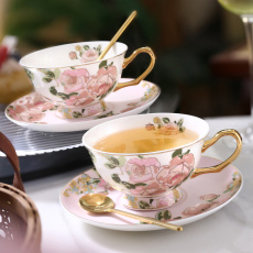 轻奢简约陶瓷咖啡杯碟套装欧式骨瓷花茶杯红茶下午茶杯具礼盒礼物
