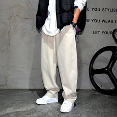 纯色宽松直筒针织卫裤男青年百搭挺阔运动休闲裤潮牌阔腿通勤长裤