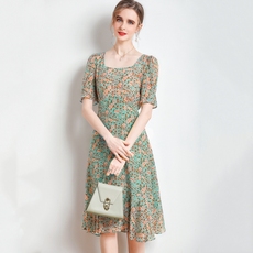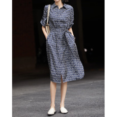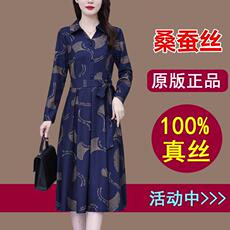 重磅真丝连衣裙桑蚕丝衬衫式碎花裙子夏季印花中长款杭州丝绸女装