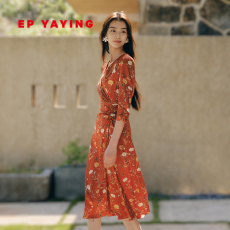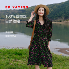 EP雅莹女装 真丝肌理感印花收腰开叉连衣裙 商场同款 4635A
