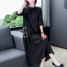 唐装女中国风杭州品牌真丝连衣裙夏季新款刺绣改良旗袍桑蚕丝裙子