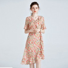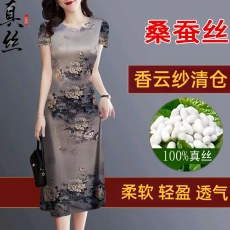 小个子真丝连衣裙夏季桑蚕丝高端品牌广州十三行中年妈妈洋气裙子