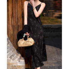 非遗香云纱 真丝吊带长裙 数码印花国风新中式连衣裙黑色女装夏季