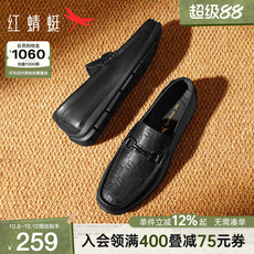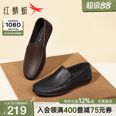 红蜻蜓男士休闲皮鞋新款一脚蹬男鞋豆豆乐福鞋软底舒适真皮爸爸鞋