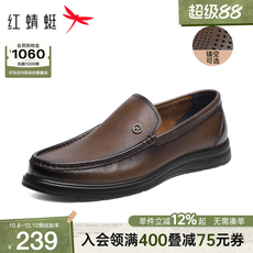 红蜻蜓男士皮鞋真皮软底休闲男鞋舒适中老年一脚蹬鞋子男款爸爸鞋