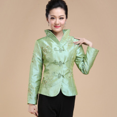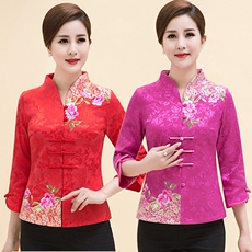 绣花双领唐装女士长袖外套春秋季女装中式妈妈装旗袍上衣 清仓ML