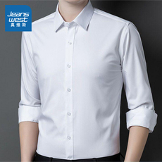 【三防易打理】欧定头等舱白色衬衫男长袖极地白免烫抗皱商务男装