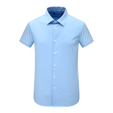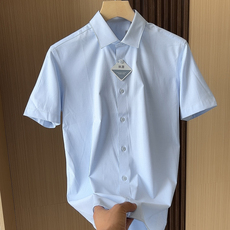 夏季男士短袖蓝色衬衫商务休闲冰丝薄款抗皱衬衣免烫纯色简约寸衫