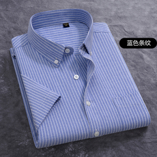 夏季男士蓝色条纹衬衫短袖修身潮流商务休闲半袖纯棉免烫白领衬衣