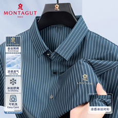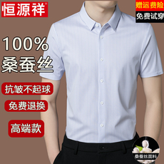 保罗秋夏季上新桑蚕丝商务休闲长袖衬衫男士短袖衬衣修身爸爸男装