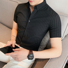 短袖衬衣男士夏季免烫韩版修身潮流帅气商务休闲条纹半袖寸衬衫男