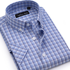 3年质保 全棉高级感短袖男士格子衬衫有口袋商务休闲半袖薄款透气