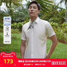 领佐LENZON甩货促销款男士夏季新款白色商务短袖衬衫高支纱