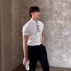 男士商务正装长袖白衬衫大码宽松职业短袖潮流立领黑色韩版衬衣寸