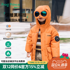 【商场同款】青蛙王子童装男小童中长款羽绒服冬季新款趣味眼镜帽
