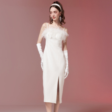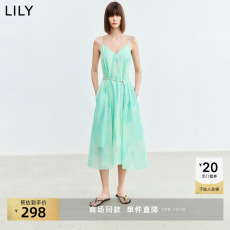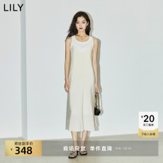 【商场同款】LILY夏新款微光气质复古浪漫吊带连衣裙小白裙女