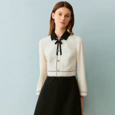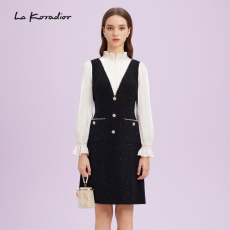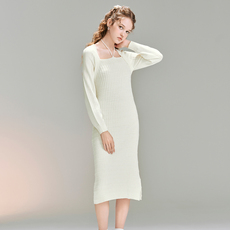 乔万尼时尚新品连衣裙商场同款假两件设计复古羊毛针织裙EI4E669