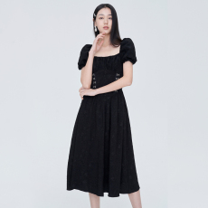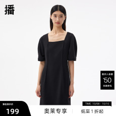 【播奥莱】播商场同款气质连衣裙春秋方领泡泡袖裙子女BDQ3LD0525
