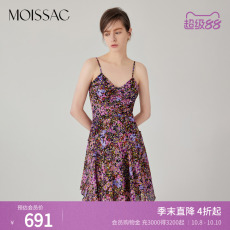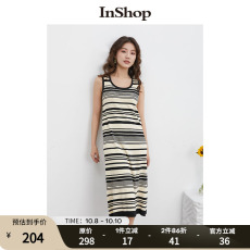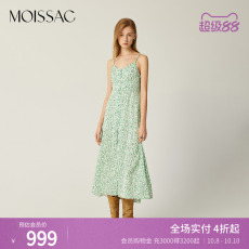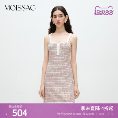 商场同款 MOISSAC摩萨克甜美小香风格纹针织吊带连衣裙女