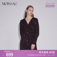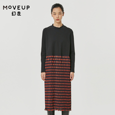【商场同款】MOVEUP幻走2021冬季小高领雪纺压褶设计师针织连衣裙