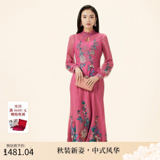 SUSSI/古色24夏商场同款粉色新中式中长款连衣裙女