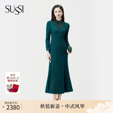SUSSI/古色冬商场同款墨绿贴花S型高级感羊毛连衣裙女装