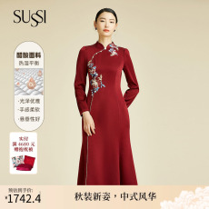 SUSSI/古色夏商场同款新年红装新中式婚宴装刺绣连衣裙女
