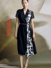 商场同款2024年夏季新款印花拼接西装领短袖通勤连衣裙XF05380W0