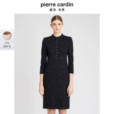 商场同款商场同款皮尔卡丹女装冬季新款黑色羊毛中长款连衣裙