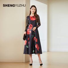 声雨竹官方旗舰店秋冬季新款连衣裙商场同款长袖红色高级感A字裙