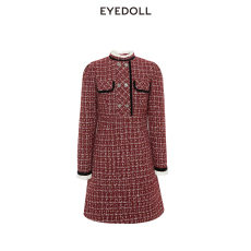 EYEDOLL【商场同款】新款显白直筒小香风红色短款连衣裙