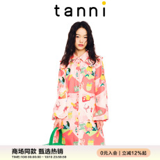 tanni商场同款A字修身甜美印花可拆卸娃娃领长袖连衣裙TL11DR063A